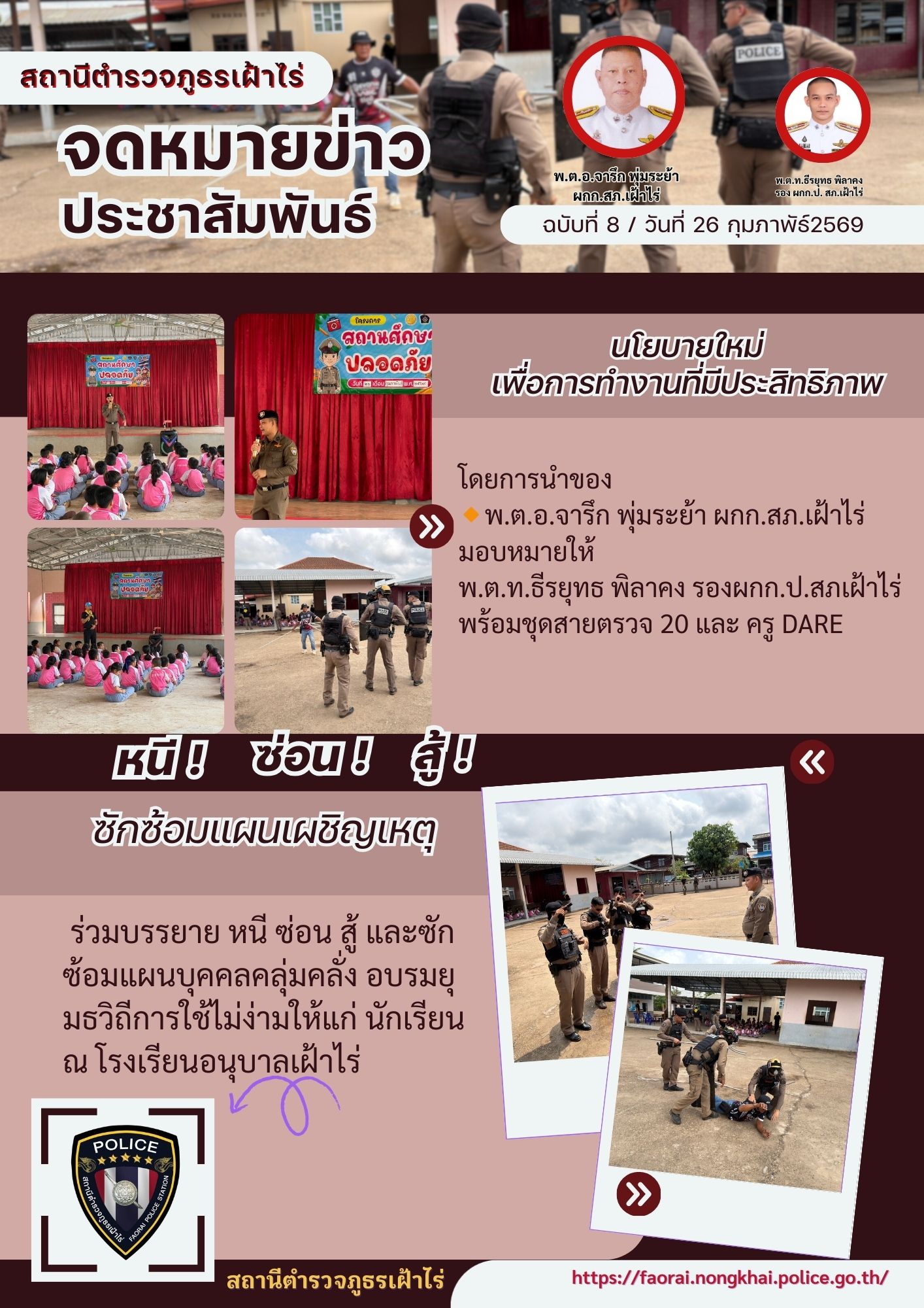 🚔 [รายงานการปฏิบัติหน้าที่] สายตรวจ สภ.เฝ้าไร่ เข้าระงับเหตุทะเลาะวิวาทบริเวณทุ่งนา บ้านหนองยาง 🚔 > ค่ำวันนี้ เจ้าหน้าที่สายตรวจ (ชุด 20) สภ.เฝ้าไร่ รับแจ้งเหตุทะเลาะวิวาททำร้ายร่างกาย (เหตุ 200) บริเวณพื้นที่กลางทุ่งนา บ้านหนองยาง จึงได้เร่งเดินทางไปตรวจสอบและระงับเหตุ > 📍 การดำเนินการ: > 🔸 เมื่อเดินทางถึงจุดเกิดเหตุ ไม่พบตัวผู้ก่อเหตุ (คาดว่าหลบหนีไปก่อนเจ้าหน้าที่เดินทางมาถึง) > 🔸 เจ้าหน้าที่ได้ทำการตรวจสอบและลาดตระเวนโดยรอบพื้นที่ เพื่อให้แน่ใจว่าไม่มีผู้ได้รับบาดเจ็บตกค้าง และป้องกันการกลับมาก่อเหตุซ้ำ > 🟢 สถานการณ์ปัจจุบัน: เหตุการณ์ทั่วไปสงบเรียบร้อย ไม่มีเหตุรุนแรงบานปลาย