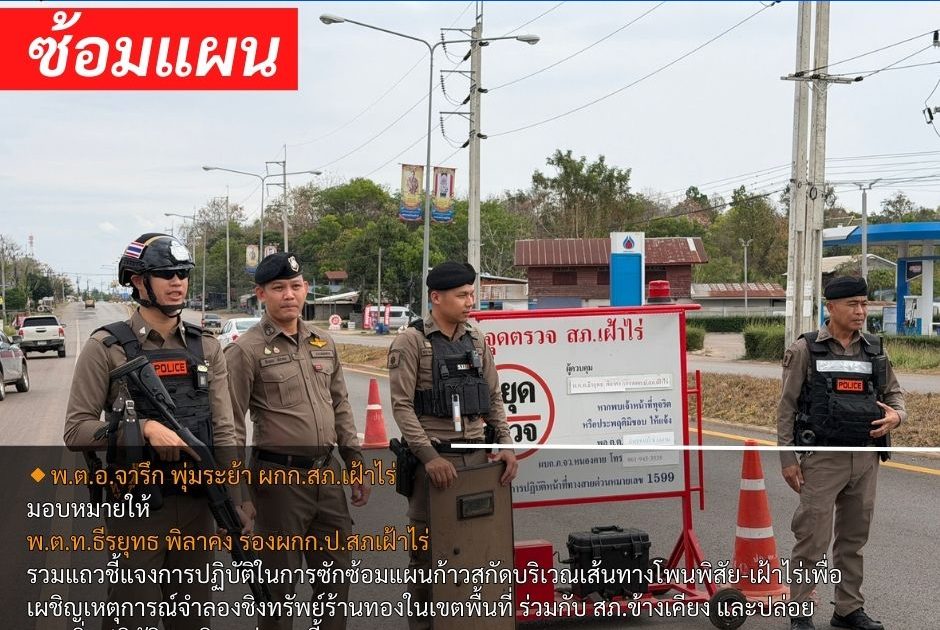 รวมแถวชี้แจงการปฏิบัติในการซักซ้อมแผน9สกัดบริเวณเส้นทางโพนพิสัย-เฝ้าไร่เพื่อเผชิญเหตุการณ์จำลองชิงทรัพย์ร้านทองในเขตพื้นที่ ร่วมกับ สภ.ข้างเคียง และปล่อยแถวเริ่มปฏิบัติภารกิจ แต่เวลานี้