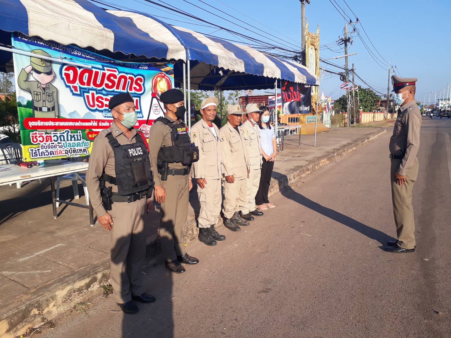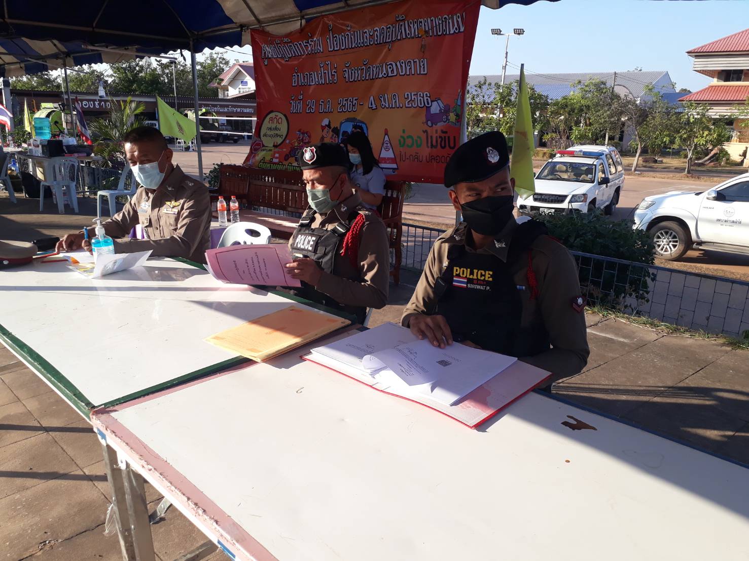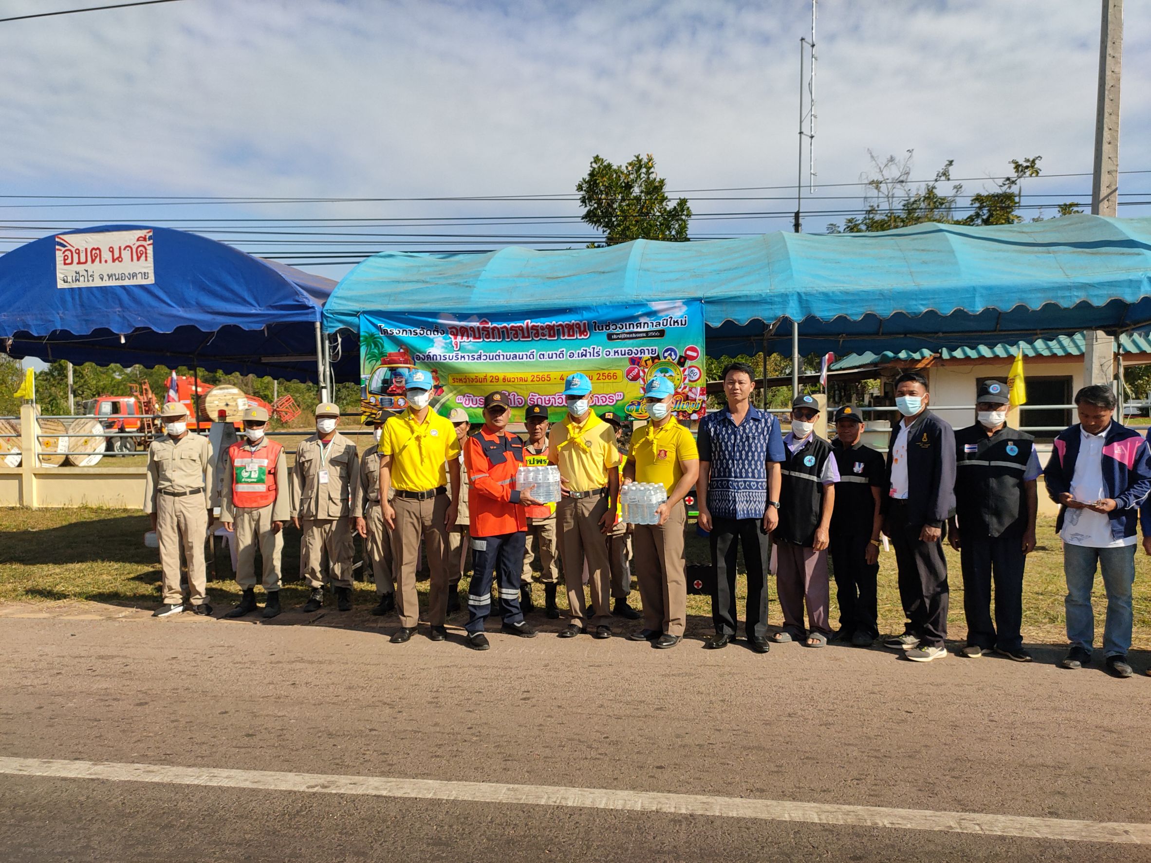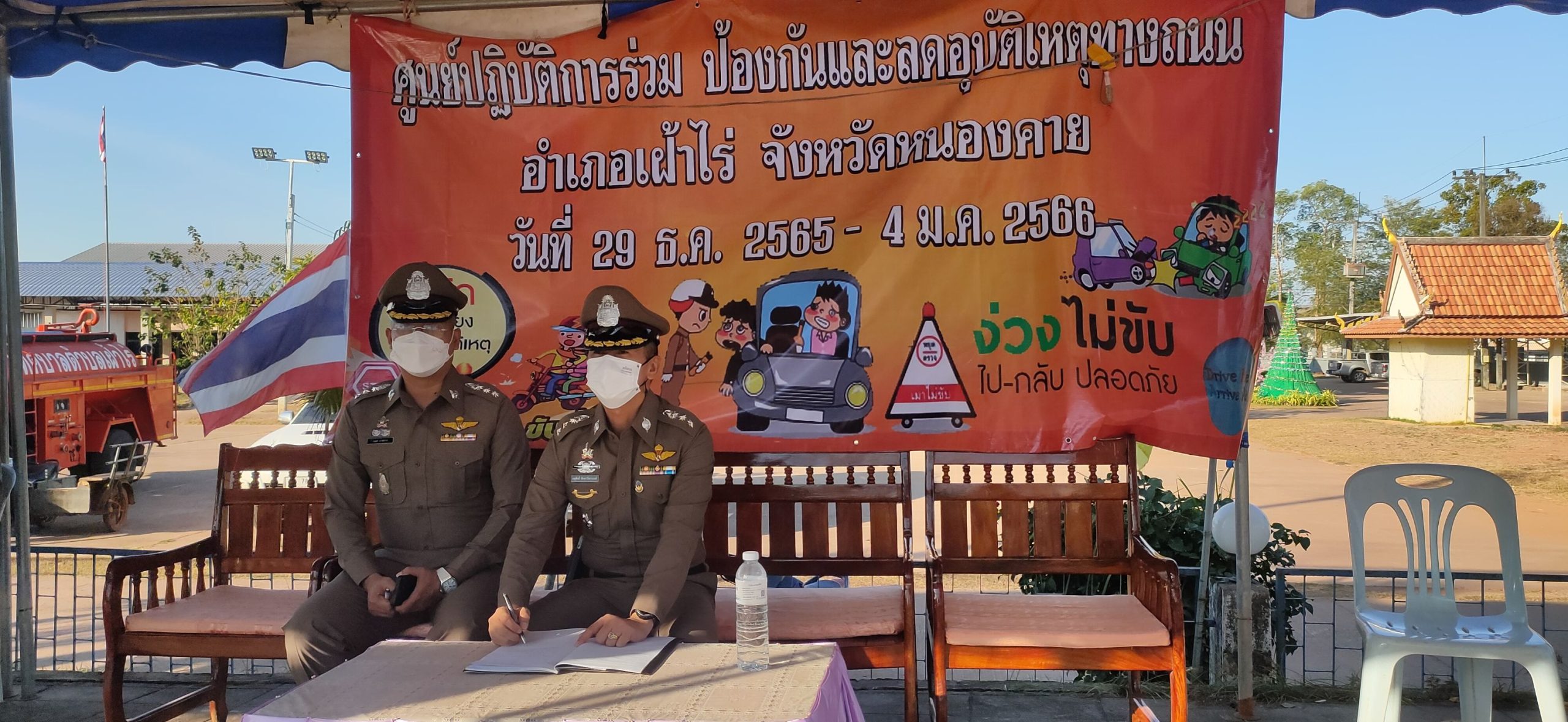 ได้ตรวจเยี่ยมจุดตรวจหลัก ช่วงเทศกาลปีใหม่ ณ หน้าเทศบาล ต.เฝ้าไร่ อ.เฝ้าไร่ จ.หนองคาย พบ เจ้าหน้าที่ ตำรวจ สภ.เฝ้าไร่และเจ้าหน้าที่ประจำจุดตรวจ ที่ปฏิบัติหน้าที่อำนวยความสะดวกดานการจราจร ประชาสัมพันธ์ ให้ประชาชนผู้ใช้รถใช้ถนนปฏิบัติตามกฎจราจร และมอบเครื่องดื่ม ให้กับเจ้าหน้าที่ประจำจุดตรวจ