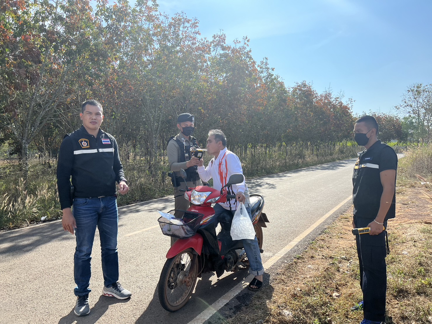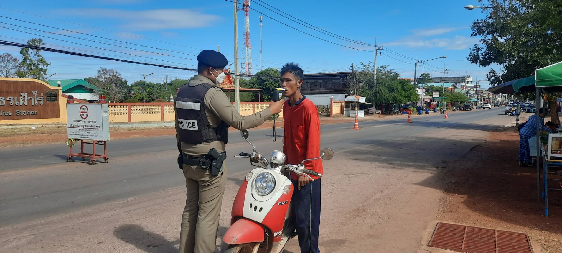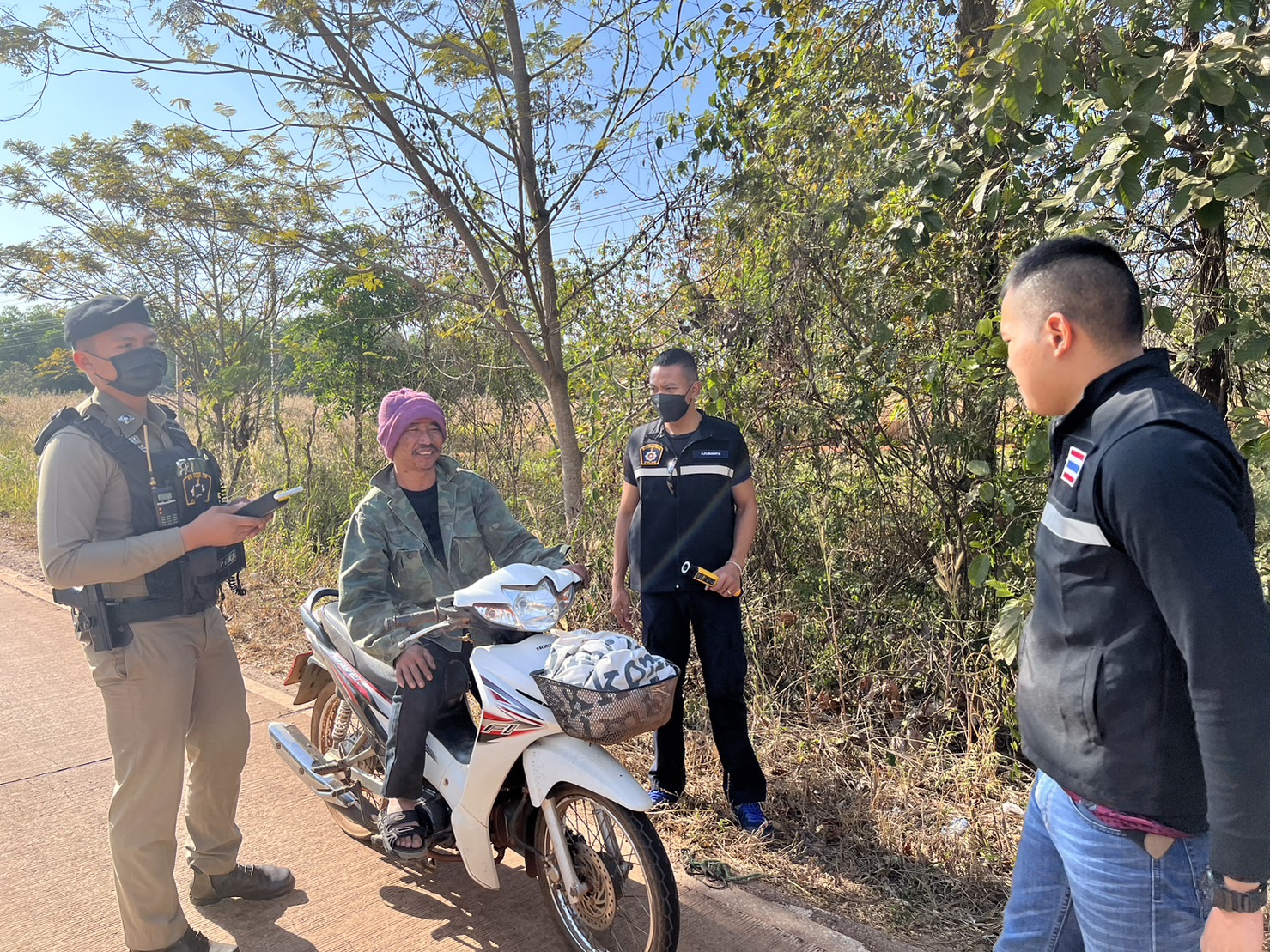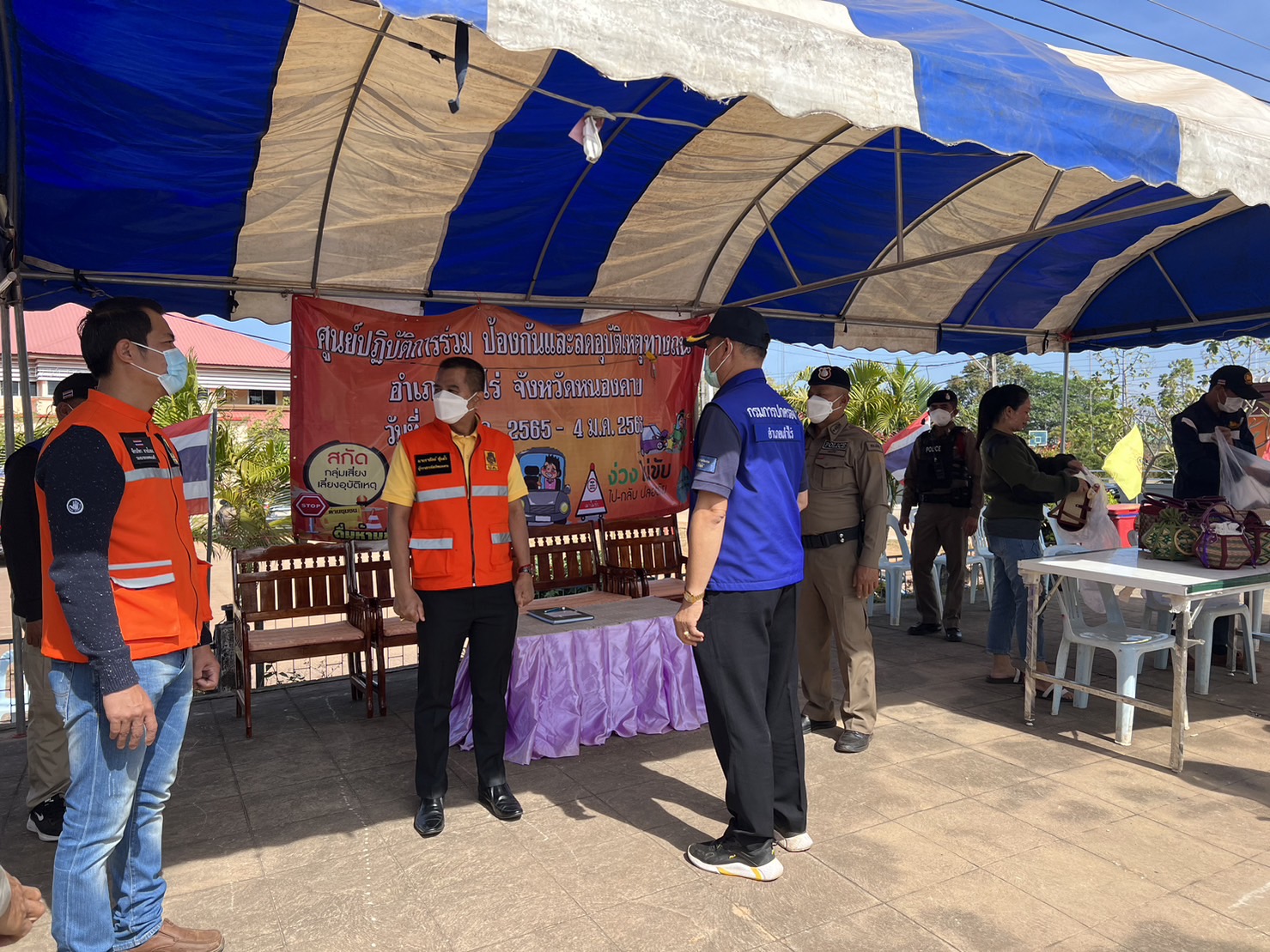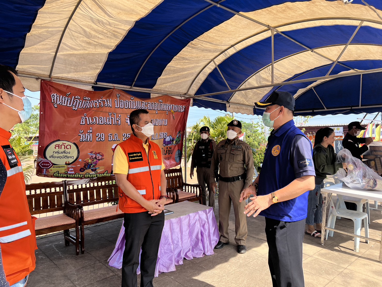 ได้ตรวจเยี่ยมจุดตรวจหลัก ช่วงเทศกาลปีใหม่ ณ หน้าเทศบาล ต.เฝ้าไร่ อ.เฝ้าไร่ จ.หนองคาย พบ เจ้าหน้าที่ ตำรวจ สภ.เฝ้าไร่และเจ้าหน้าที่ประจำจุดตรวจ ที่ปฏิบัติหน้าที่อำนวยความสะดวกดานการจราจร ประชาสัมพันธ์ ให้ประชาชนผู้ใช้รถใช้ถนนปฏิบัติตามกฎจราจร และมอบเครื่องดื่ม ให้กับเจ้าหน้าที่ประจำจุดตรวจ