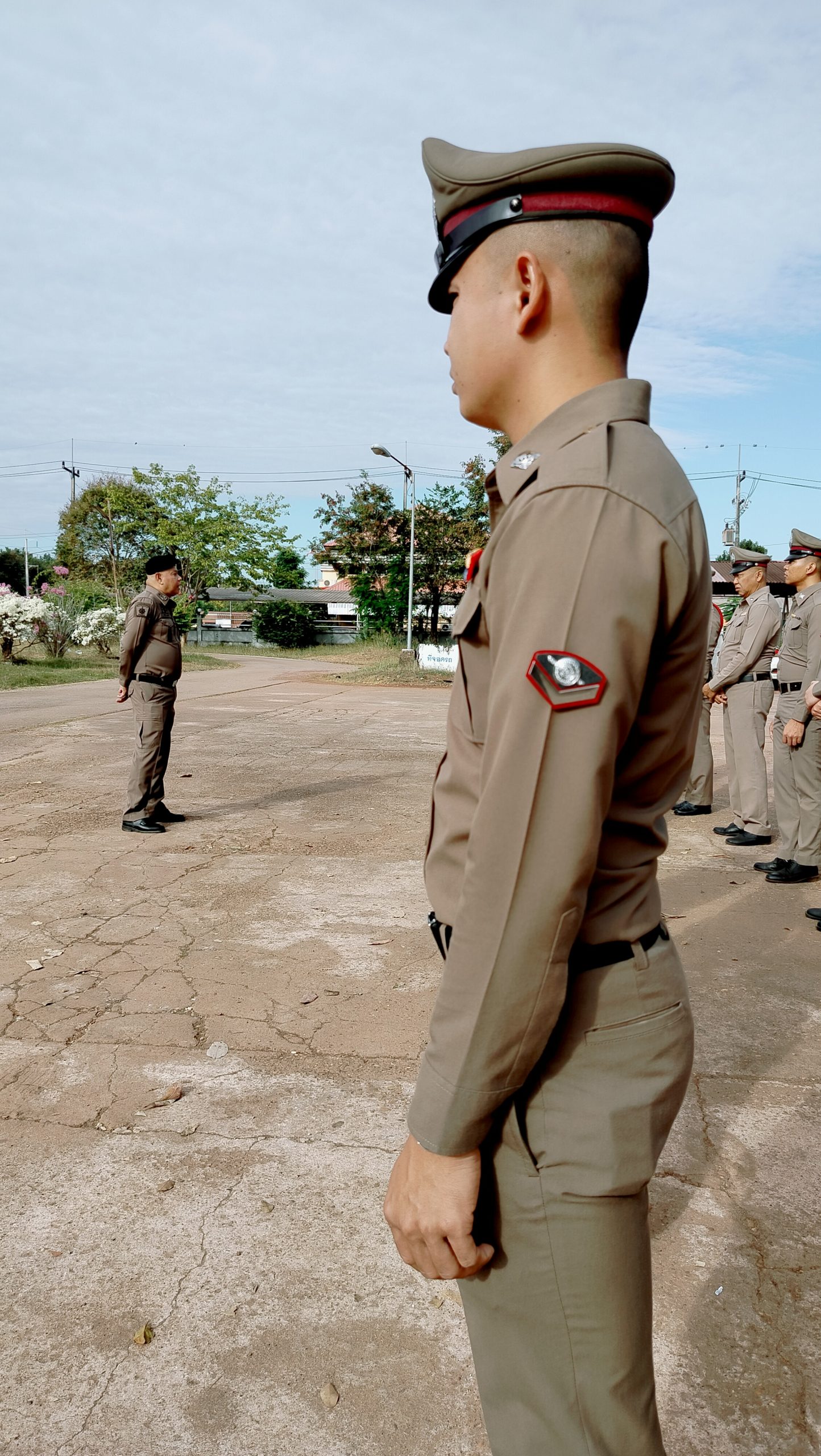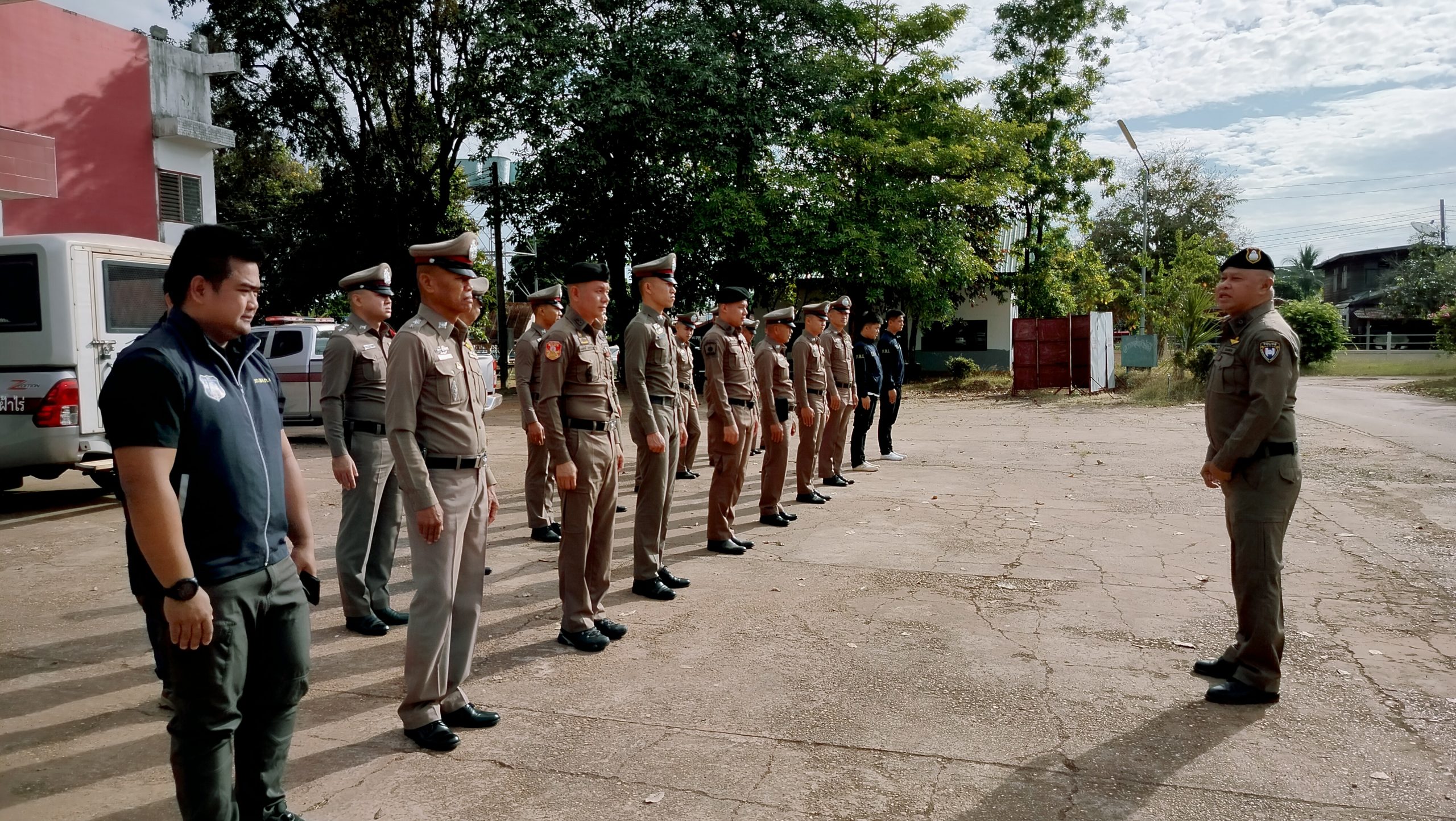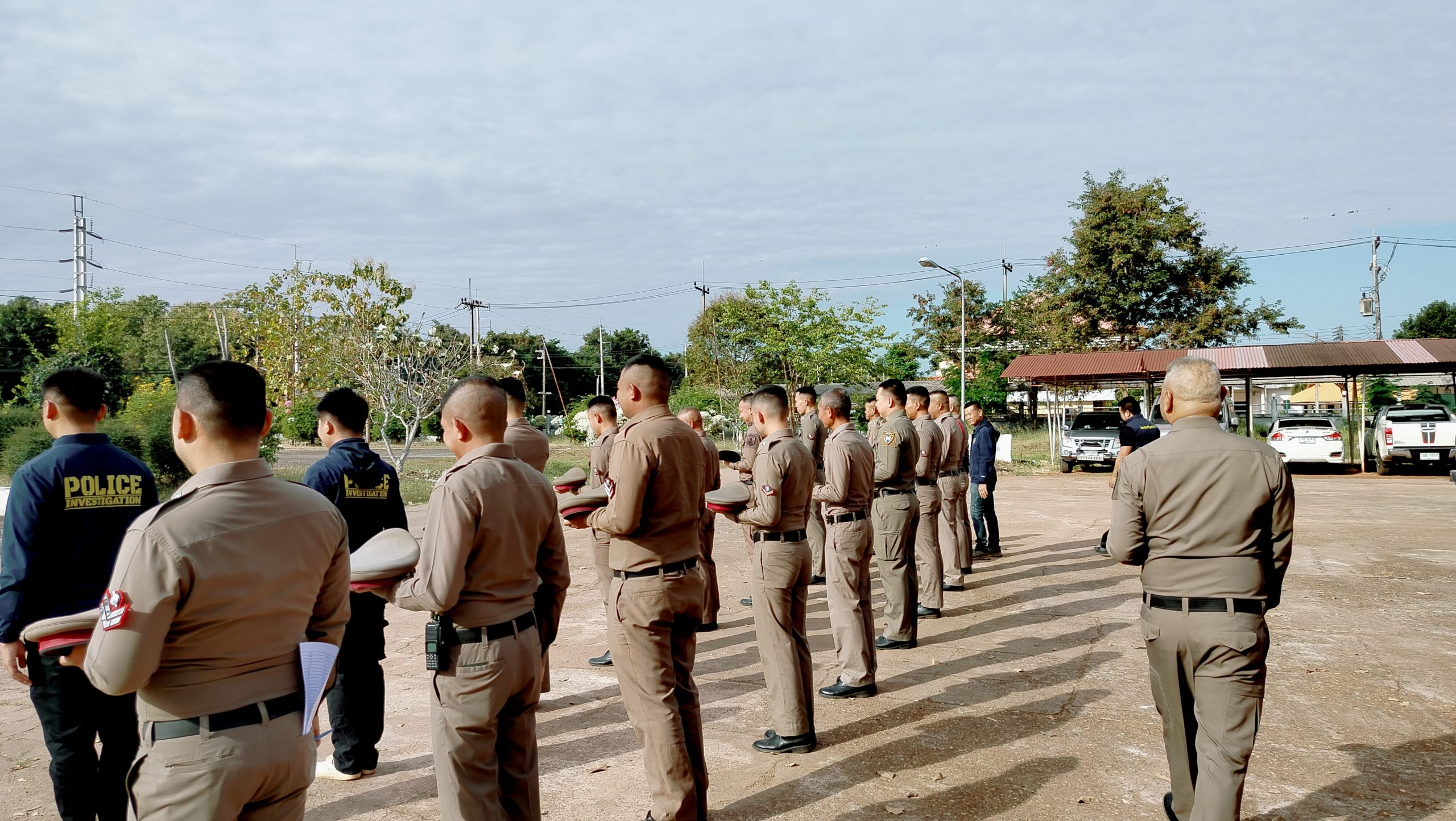 🔻นำข้าราชการผู้ใต้บังคับบัญชา เข้าแถวเคารพธงชาติตรวจทรงผม เครื่องแต่งกายทุกนายให้ถูกต้องตามระเบียบข้อสั่งการ ชี้แจงหน้าที่ข้อสั่งการและนโยบาย ระเบียบข้อบังคับ ตาม ว.0 พิทักษ์ 1และการให้บริการประชาชน