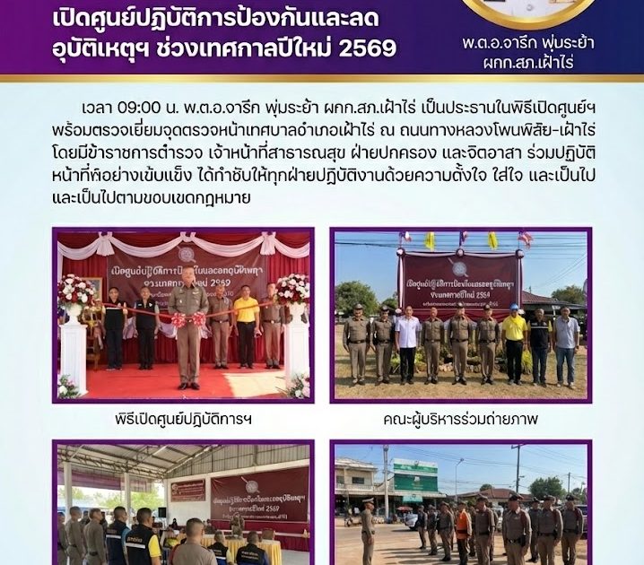ได้ร่วมพิธีเปิดศูนย์ปฏิบัติการป้องกันและลดอุบัติเหตุฯ69 พร้อมตรวจเยี่ยมจุดตรวจกวดขันวินัยจราจรและจุดบริการชุมชนหน้าเทศบาลอำเภอเฝ้าไร่ ช่วงเทศกาลปีใหม่ 2569