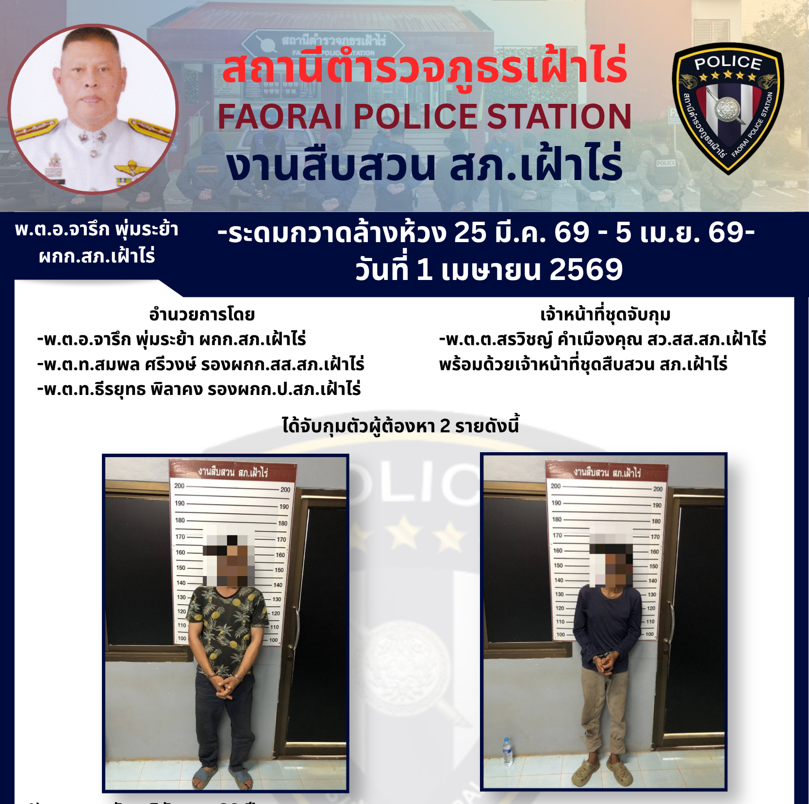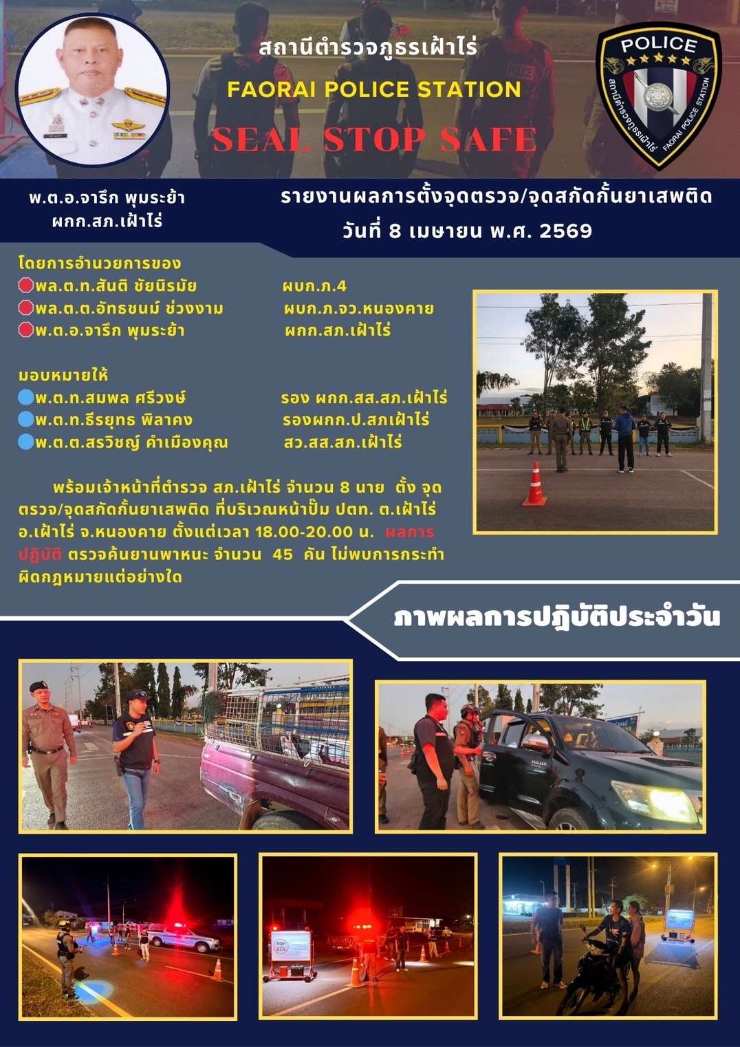 8 เม.ย. 2569 เวลา 12:00 น. โดยการอำนวยการของ 🔹พ.ต.อ.จารึก พุ่มระย้า ผกก.สภ.เฝ้าไร่ 🔹พ.ต.ท.ธีรยุทธ พิลาคง รอง ผกก.ป สภ.เฝ้าไร่ 🔻มอบหมายสั่งการให้🔻 ร.ต.ท.สมเกียรติ ทองใบ รอง สว.(ป.) สภ.เฝ้าไร่(ร้อยเวร20) พร้อมพวกฯ 2-0 สายตรวจ ว.4 ตรวจปั้มน้ำมันในเขตรับผิดชอบ 1.) ปั้ม PTT เฝ้าไร่ ผลการปฏิบัติ เปิดให้บริการ ไม่พบการกักตุนน้ำมันเชื้อเพลิงในปั้ม