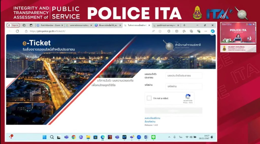 Clinic ITA ผ่าน zoom conference POLICE ITA 26 November 2567 by Fr50 / ข่าวภารกิจผู้บังคับบัญชา,ITA,ข่าวประชาสัมพันธ์,ข่าวกิจกรรม พ.ต.อ.จารึก พุ่มระย้า ผกก.สภ.เฝ้าไร่ เข้าร่วม กิจกรรม Clinic ITA ผ่าน zoom conference POLICE ITA กิจกรรมชี้แจงการประเมินคุณธรรมและความโปร่งใสในการดำเนินงานของหน่วยงานภาครัฐ (Integrity & Transparency Assessment: ITA) ของสถานีตำรวจนครบาล/สถานีตำรวจภูธร ประจำปึงบประมาณ พ.ศ. 2568 วันอังคารที่ 26 พฤศจิกายน 2567 เวลา 09.00 – 16.00 น. Facebook iconFacebookTwitter iconTwitterLINE iconLine
